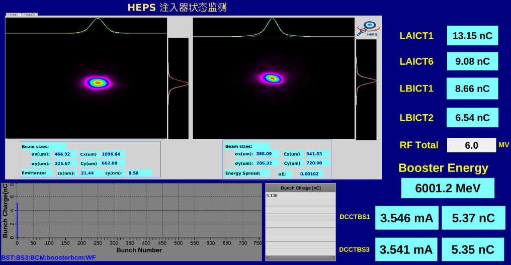 增强器起着承上启下的作用,在较低的能量(称为注入能量)下接收上游加速器(一般为直线加速器)的电子束,之后将束流加速到与储存环相同的能量(称为增强器的引出能量),最后引出束流并注入至储存环内。单束团电荷量的提升意味着可以快速地提升储存环每个束团的电荷量。另一方面,单束团电荷量的提高却要面对巨大的挑战,需要解决诸如束团集体效应、俘获和传输效率等问题。我国在运行的两台增强器的单束团电荷量都不超过2纳库,而HEPS增强器现已实现了超过5纳库的单束团电荷量。