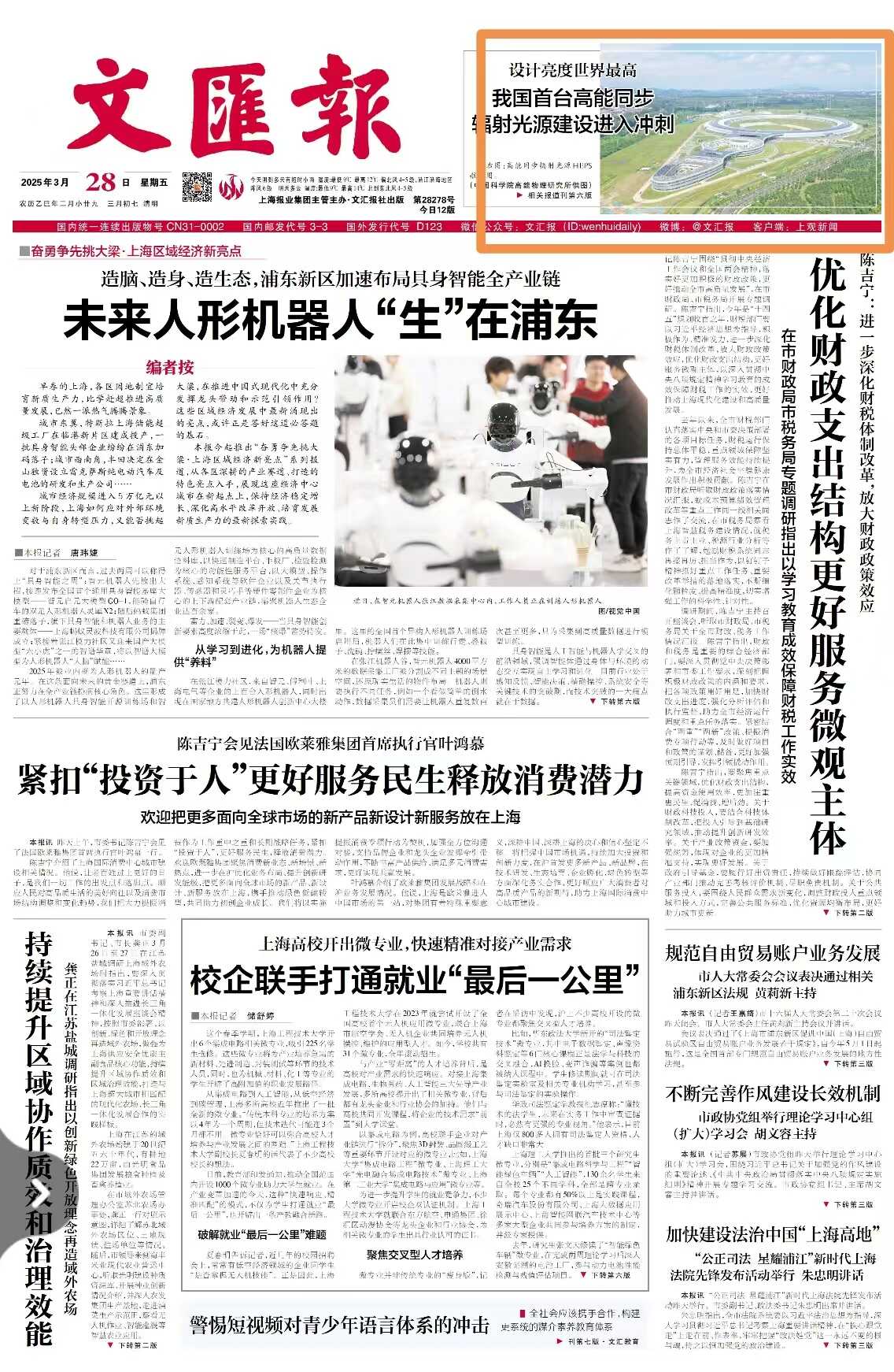【文汇报】设计亮度世界最高  我国首台高能同步射光源建设进入冲刺