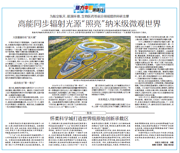 怀柔科学城正以世界先进水平的重大科技基础设施群为依托,将建成与国家战略需要相匹配的世界级原始创新承载区,参与全球科技创新与合作。