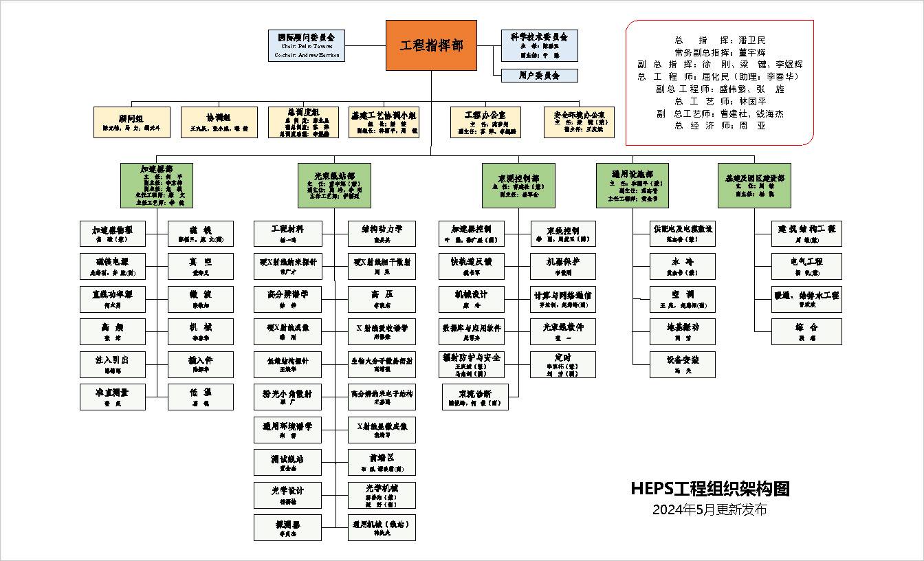 根据相关规范和工程惯例,经中国科学院批准,HEPS工程成立工程指挥部,为确保实时和高效的领导,工程具体工作由HEPS工程指挥部负责。同时,设国际顾问委员会、科学技术委员会、用户委员会,作为工程指挥部咨询机构。