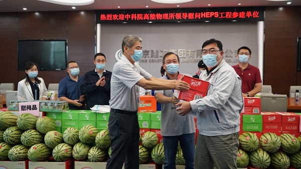 北京建工集团党委书记刘劲松表示:北京建工作为HEPS项目的参建方之一,非常荣幸能够参与HEPS的工程建设。参建各方应该“回头看”也要“向前看”,回头看是我们风雨同舟,经过两年多时间将一片荒草地变成一座初具规模的大基建项目;“向前看”是北京建工集团会一如既往与高能所携手共进、加强协调和沟通;北京建工集团作为总包集团,会继续强化总包管理,科学筹划,用“勇当冠军”的精神将HEPS项目建设成精品工程。最后,他对HEPS工程指挥部组织的本次慰问表示感谢。