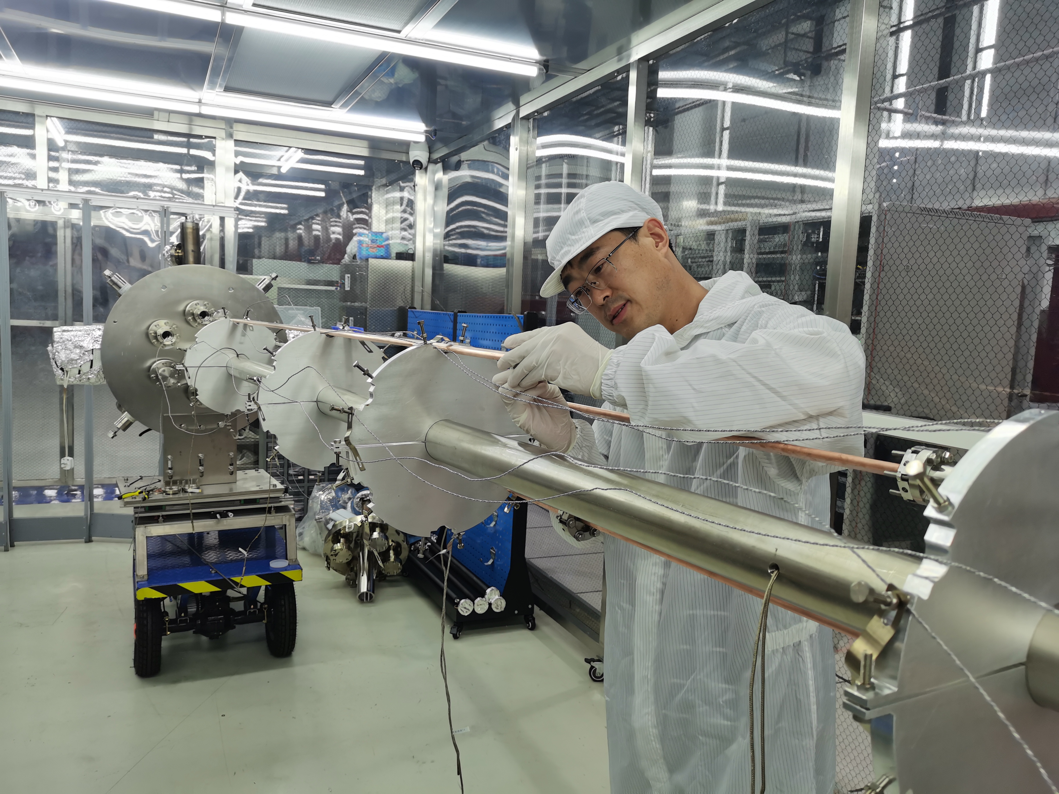 高温假期间,储存环真空盒镀膜、单元预安装准直、隧道安装和光束线站棚屋安装等工作相关人员也在积极加班,推进相关工作进度。