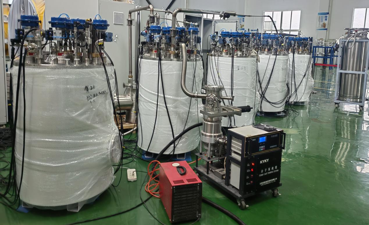 液氮过冷器冷箱是同步辐射光源中的重要低温设备,可为低温波荡器和低温单色器提供稳定冷源,提高其关键性能,此前一直依赖进口。2016年,高能所低温组开始过冷器冷箱的研制工作,在2019年完成冷箱整机国产化,打破了整机只能进口的状态。随后,经过近三年的攻关,于2022年实现了冷箱关键硬件——低温循环泵的国产,并对低温阀门、流量计、液位计、低温接头等进行了国产替代。20232月,完成了过冷器冷箱的整体调试,整机和部件实现国产化。本次5台量产的测试达标,表明设备制作集成工艺稳定,标志着冷箱技术的成熟。