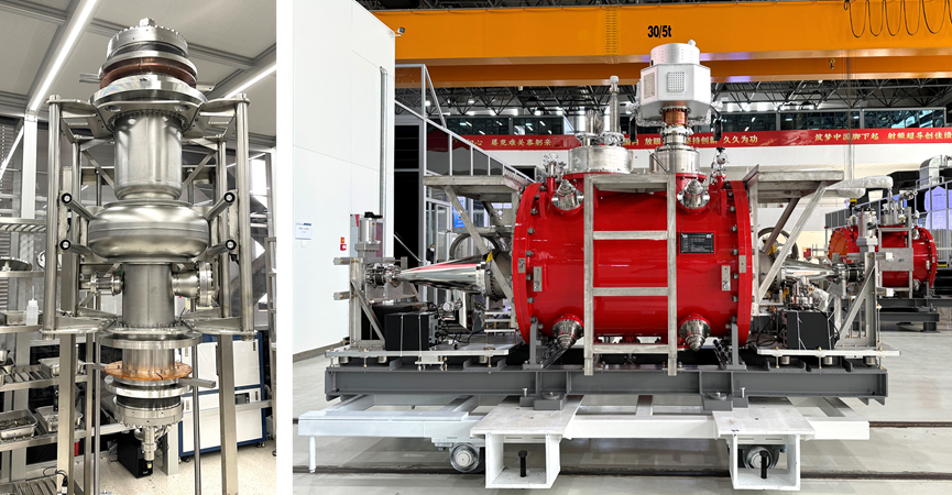 HEPS 500 MHz超导腔串洁净组装(左图)及超导模组(右图)