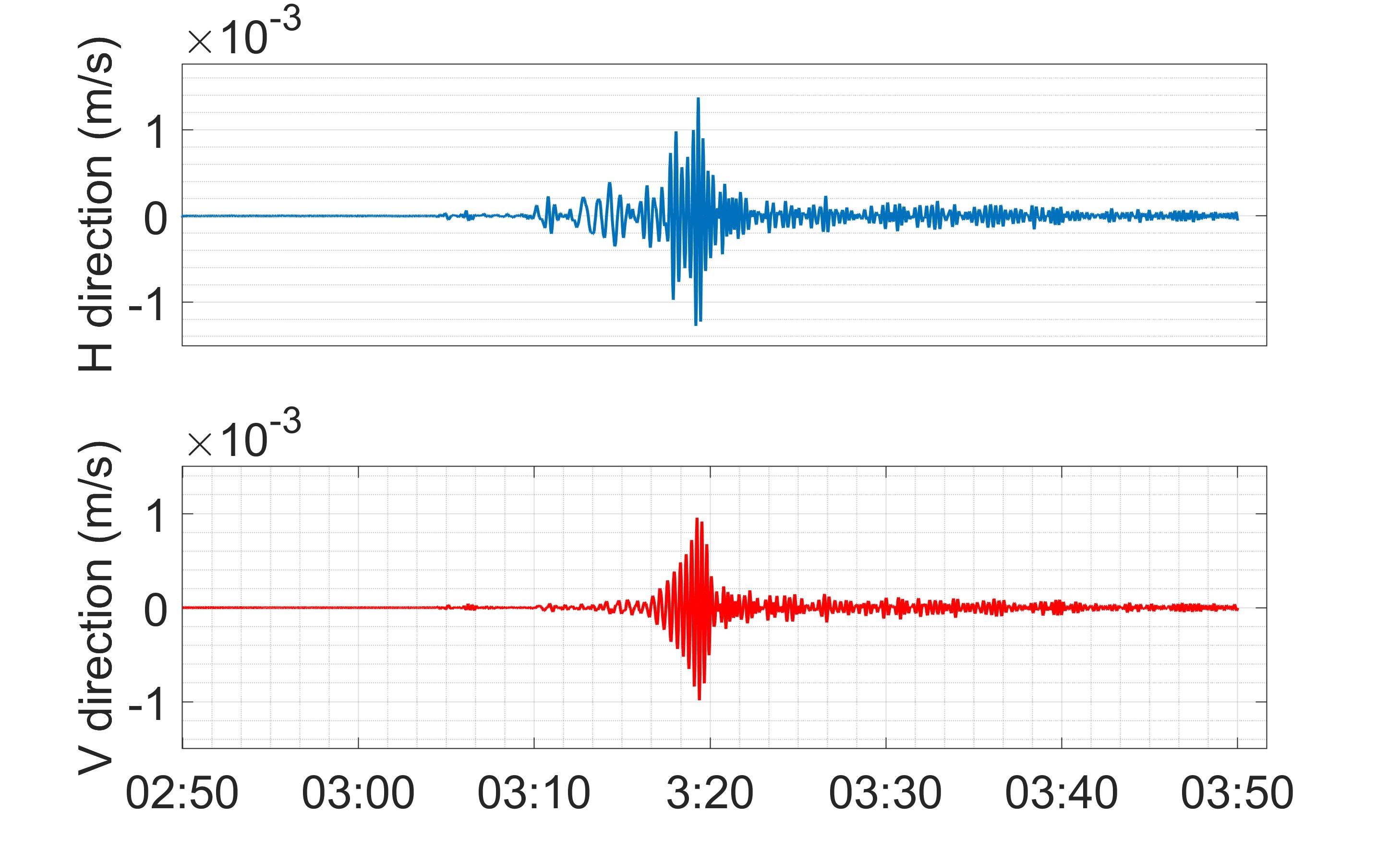 2HEPS布设的地震仪测得的地面波动数据(2025.09.19凌晨02:50 – 03:50