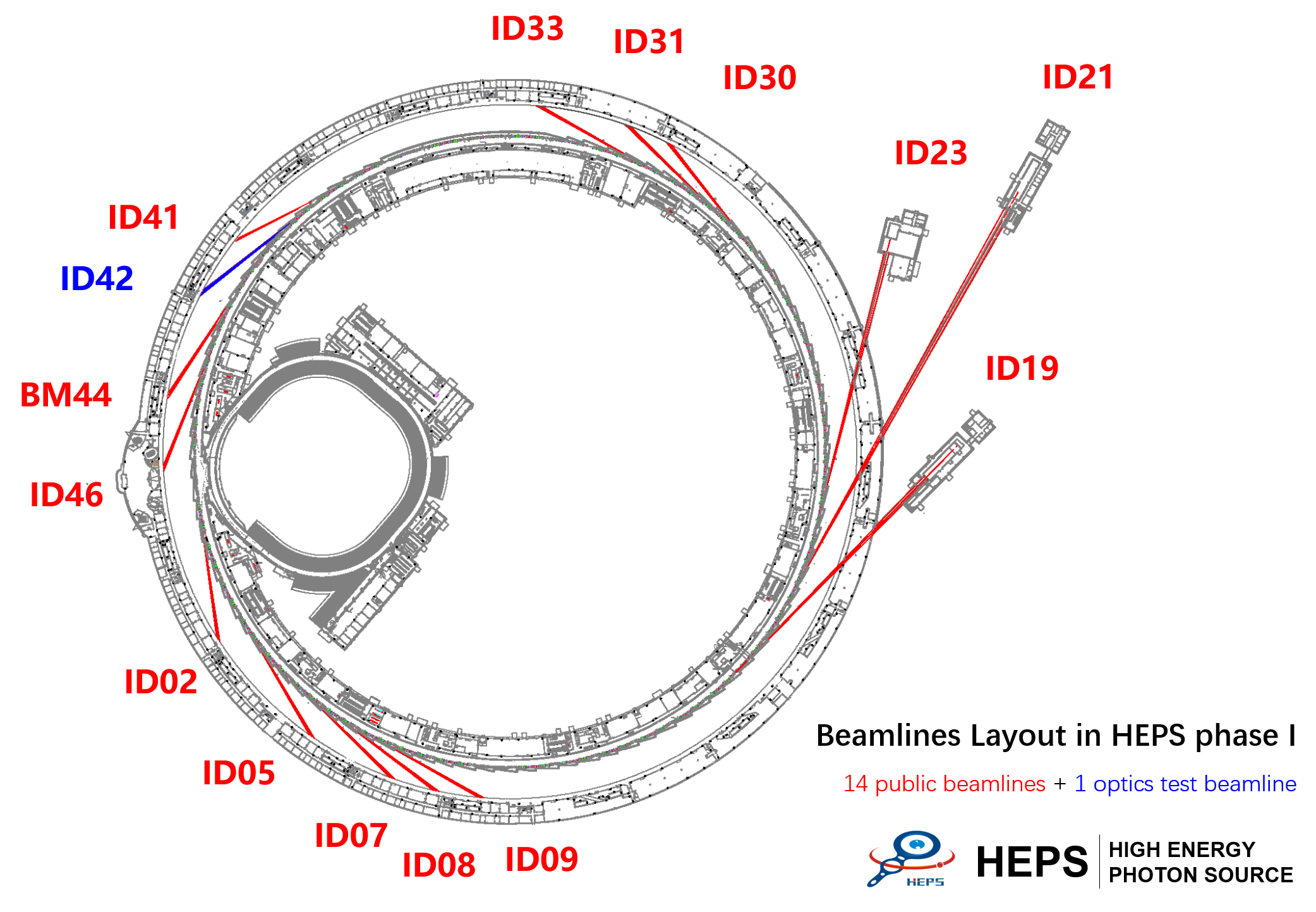 HEPS光束线站将瞄准国家重大需求和科学前沿发展,为多学科的前沿研究、技术的创新和发展提供基础的支撑平台。根据国家和用户的要求、科学需求,同时考虑建设经费和建设周期等因素,经过专家和相关专业组的讨论、评议和遴选,将首批建设14条公共光束线站和相应的辅助设施。