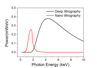 1B3A 束线光源经过一个镀铬反射镜反射,然后通过一个 0.5 微米厚的氮化硅膜,再通过 18微米厚度的铍膜(可选)后照射在样品上, 光斑尺寸水平大约 50 毫米,竖直 10 毫米。 样品环境为真空, 样品台在竖直方向扫描曝光, 行程最大范围±50 毫米,也可实现不扫描定点曝光。
