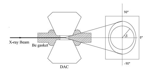 入射光为单色光,能量范围为10-25keV,常用的能量为20keV。样品的衍射信号由Mar345成像板收集。可以探测物质在高压下的结构相变、状态方程等,是目前高压站的主要实验方法。