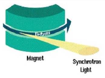 同步辐射是速度接近光速的带电粒子在作曲线运动时沿切线方向发出的电磁辐射——也叫同步光。这种光是1947年在美国通用电器公司的一台70Mev的同步加速器中首次观察到的,因此被命名为同步辐射,但对同步辐射的研究与认识并非从此开始,对于这种高速运动的电子的速度改变时会发出辐射的现象早就被人们所认识并经历了长期的理论研究,但要从实验上观察到这种辐射却不是一件容易的事,需要有以近光速运动的高能量电子,电子加速器的发展成为获得同步辐射的技术基础。