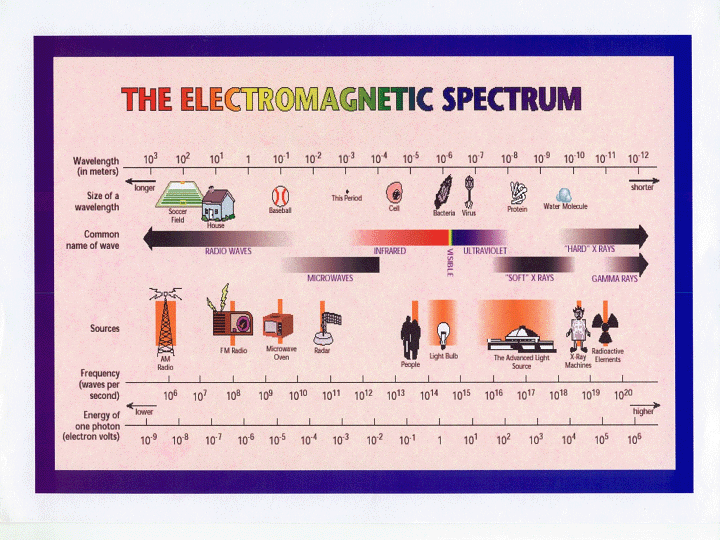 光是一种电磁波,也是一种粒子,叫做光子。可以用波长或者频率表征光波,也可以用能量表征光波。光的波长可从10-4厘米到10-16厘米,相应于光子的能量为100电子伏到10E12电子伏。波长越短,能量越高。