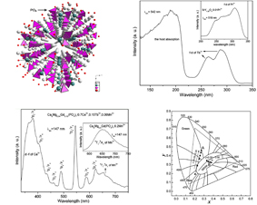 该研究组开发了几种磷酸盐为基的真空紫外发光材料。其中,磷酸盐因具有高的物理化学稳定性、对真空紫外有较好的吸收及环境友好等特点,成为稀土掺杂的优异基质材料。该研究组在几种磷酸盐基质中进行了Tb3+、Ce3+、Mn2+等发光离子的单掺与多掺,并测试了样品在真空紫外及紫外区域的激发光谱以及147nm激发下的发射光谱,通过调节激活剂的浓度调节样品的发射颜色,并研究了多掺离子之间的能量传递关系等。此外,该研究组还研究了以氧化物为基的真空紫外发光材料,以衰减时间相对较短的Tb3+作为激活剂,测试了样品的真空紫外-紫外激发光谱、发射光谱,研究了Tb3+离子在此基质中的猝灭浓度,解释了Tb3+的f-d激发峰比较靠近长波方向的原因。