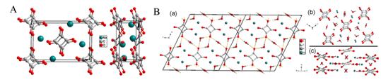 图1 A方酸钠的常压结构;B三水方酸钠的常压结构。