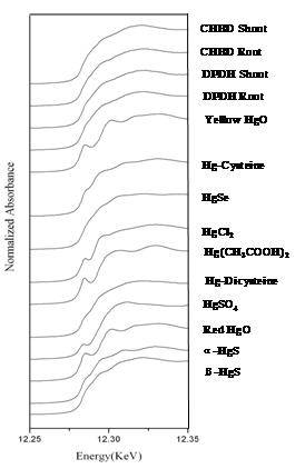 目前,没有发现汞的超富集植物。研究发现,利用硫代硫酸铵诱导植物后,汞在植物体含量能达到富集植物甚至超富集植物的标准。然而,硫代硫酸铵诱导植物后,汞在植物体转运和富集机理仍不清楚。中国科学院地球化学研究所汞研究组利用北京同步辐射装置1W1B-XAFS实验站的XANES技术对硫代硫酸铵处理植物体中汞的形态进行研究,并对植物吸收汞的机理进行探讨,相关的研究成果发表在2012年4月的《Environmental Science & Technology》上。