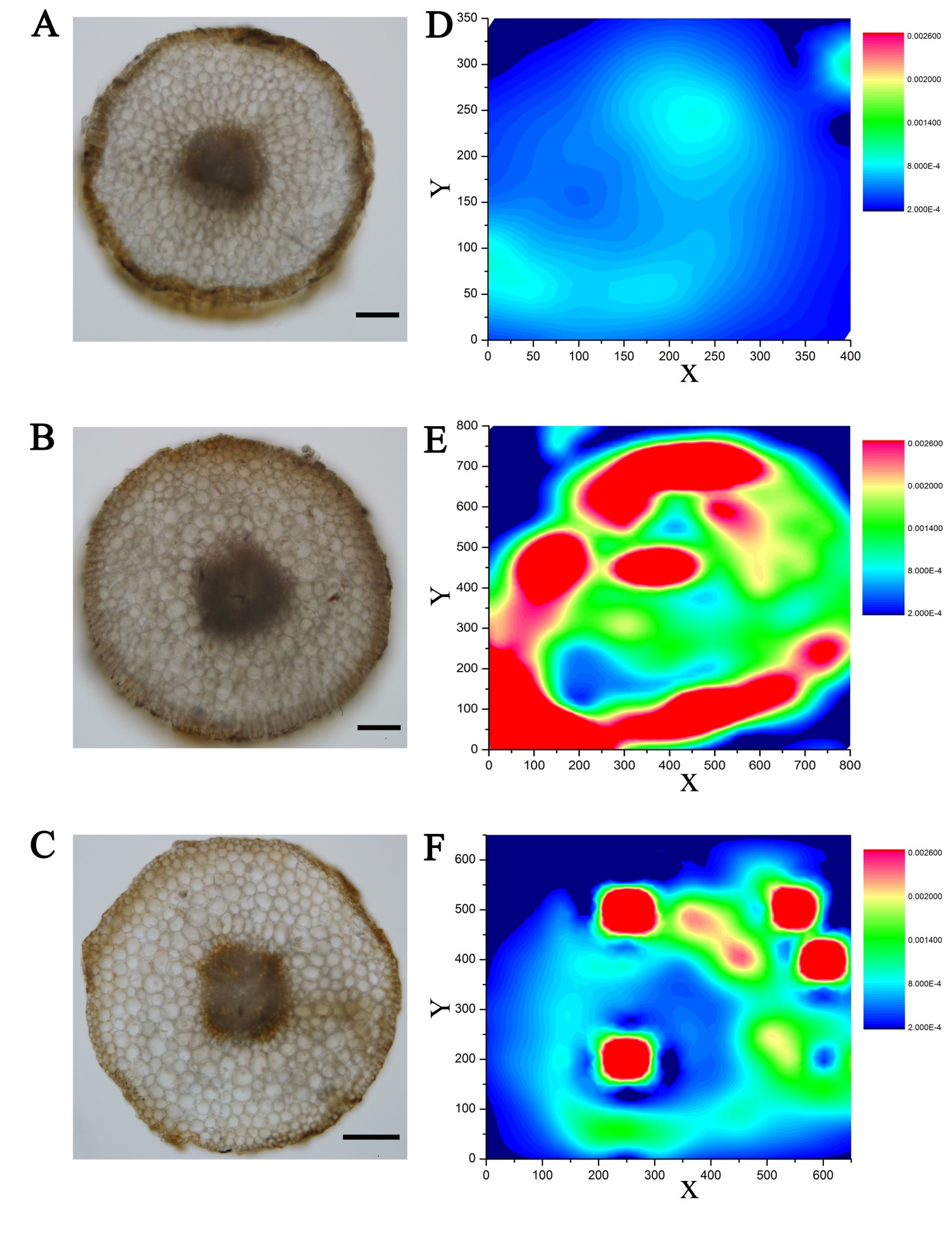 图1 SR-mXRF结果显示观察到不同基因型材料根中铁元素的天然分布。