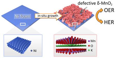 图2. 二氧化锰超薄纳米片电催化全分解水示意图
