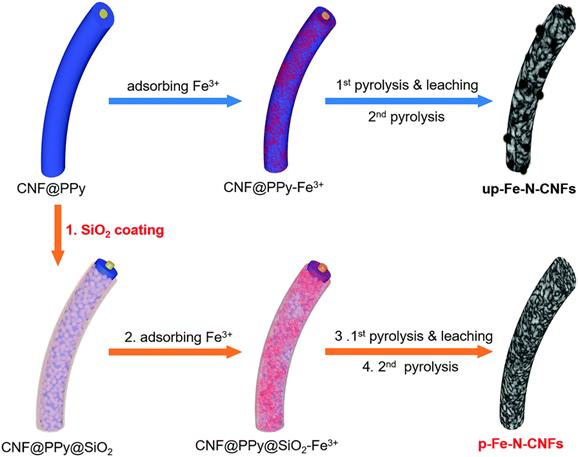 SiO2保护壳模板法合成Fe-N掺杂碳纳米纤维及其增强氧还原反应性能