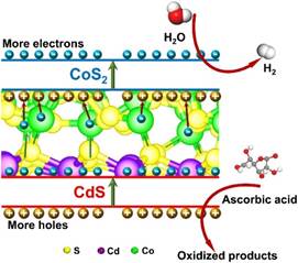该研究组报道了Z型CdS/CoS2光催化剂中界面结合形式的光谱和理论证据,证实了界面间Co-S5.8过渡层的形成。界面上Co-S5.8过渡层的形成可以引入界面态,从而作为电荷迁移途径,将电子从CdS转移到CoS2。因此,更多的光生电子和空穴可以参与表面光催化反应。根据瞬态吸收分析,催化剂中电荷分离产率高达91.5%,电荷子寿命为5.2±0.5 ns。在光照射下,CdS/CoS2的光催化析氢和污染降解效率均高于CdS和CoS2。该研究为制备高效Z型光催化剂和了解异质结光催化剂中电荷迁移途径提供了新的思路。