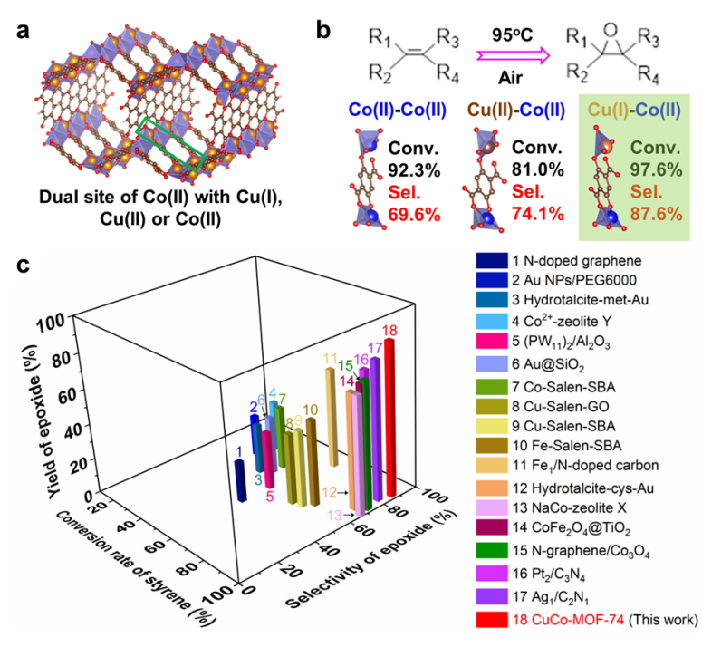 图1. CuCo-MOF-74的结构及其在空气气氛下催化苯乙烯环氧化的性能比较