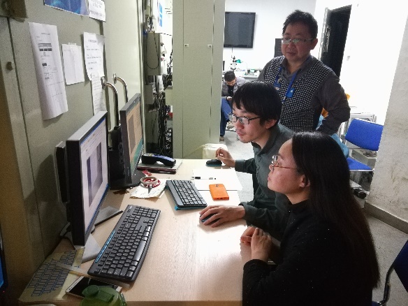 1W1A-漫散射实验站(上)、4W1A-X射线成像实验站(下)的工作人员和用户正在收集实验数据。