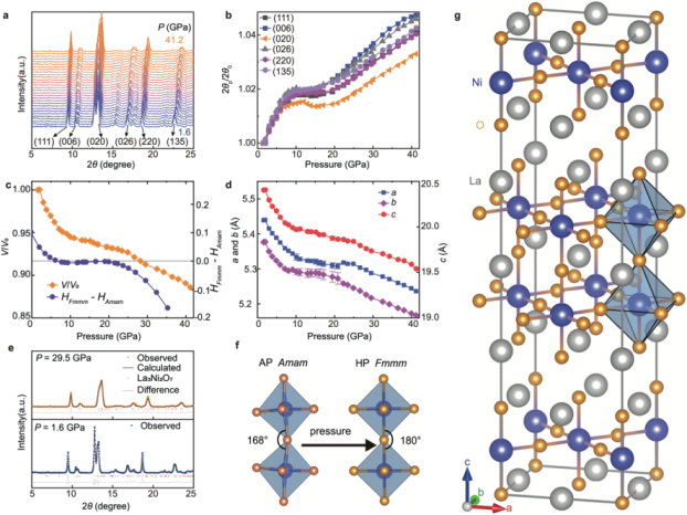 图2. La3Ni2O7高压下的同步辐射测量及结构分析。