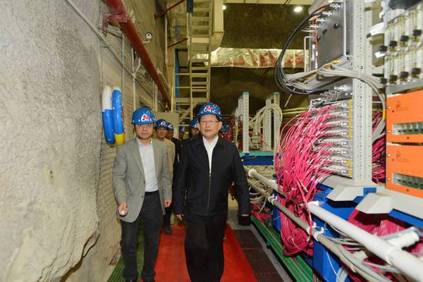 2014年11月15日下午,全国政协副主席、科技部部长万钢到高能所大亚湾中微子实验站考察调研。
