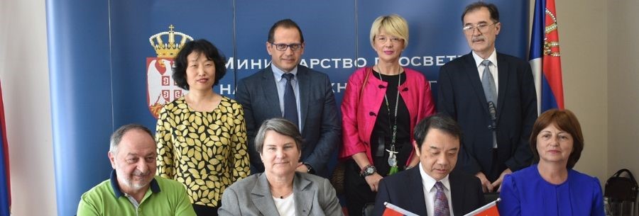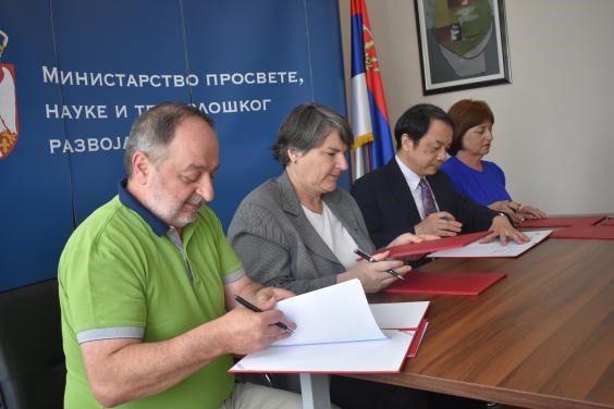 12日,王贻芳代表高能所与塞尔维亚万卡核物理研究所所长Zlatko Rakocevic、贝尔格莱德大学校长Ivanka Popovic、克拉古耶瓦克大学校长Nenad Filipovic签署联合合作协议。签署仪式在塞尔维亚教育、科技与发展部举办,塞尔维亚教育、科技与发展部部长Mladen Sarcevic,教育、科技与发展部国务秘书Vladimir Popovic,中国驻塞尔维亚大使馆一秘史义等出席签约仪式。