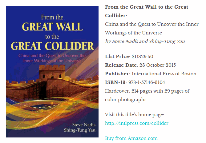 波士顿国际出版社2015年10月23日发行新书《From the Great Wall to the Great Collider》