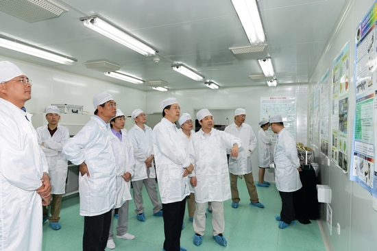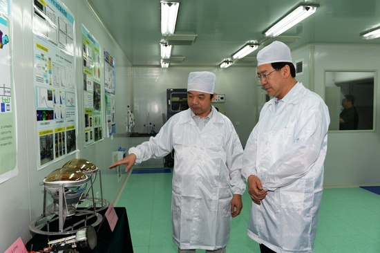 阴和俊一行首先参观了江门中微子实验的“光电倍增管测试”、“液闪研制”、“低本底测量”、“RPC宇宙线测试”实验室以及ADS的高频加速器厅。之后,听取了江门中微子实验先导专项负责人、高能所所长王贻芳关于“江门中微子实验进展”的工作汇报。就专项的科学问题、技术路线、预期成果、组织管理等关键环节与参会人员进行了细致的询问和充分的讨论,对专项的组织管理及前期工作进展给予充分肯定。