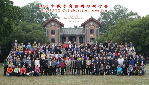 1月11日至14日,江门中微子实验国际合作组会在广州中山大学召开,来自中国(包括台湾)、亚美尼亚、比利时、巴西、智利、捷克、法国、德国、意大利、俄罗斯、美国等国家的200多名专家学者出席了此次会议。国内有中科院高能所、清华大学、上海交通大学、中山大学、山东大学、中国科学院大学、中国原子能科学研究院、南京大学等20多个科研院所和海南展创、北方夜视等企事业单位参加了此次会议。会议之前,合作组成员共赴广东省开平市金鸡镇——江门中微子实验现场,参加了实验项目建设启动会,共同见证了实验项目建设的启动。