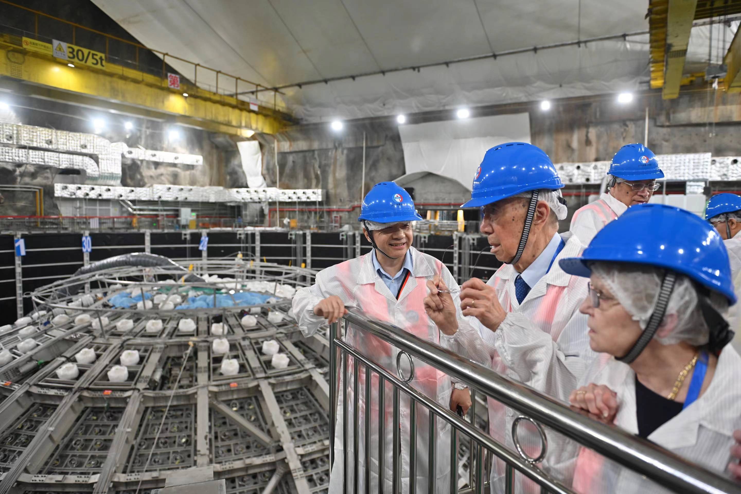 丁肇中院士、白春礼院士一行首先观看了江门中微子实验的建设历程视频,听取了项目经理王贻芳院士关于项目整体情况的汇报。随后深入地下700米到 实验探测器的建设一线进行实地考察。