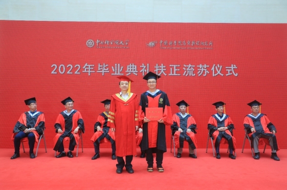 典礼上,王贻芳为院长奖获得者代表和优秀毕业生代表颁发荣誉证书,常哲为2022届校友联络人颁发聘书。随后,王贻芳为毕业生们颁发毕业证书,扶正流苏。魏龙希望毕业生们在“两个一百年”奋斗目标的历史交汇点上,要牢记党的教诲,立志民族复兴,不负韶华,不负时代,不负人民,在青春的赛道上奋力奔跑,争取跑出当代青年的最好成绩。