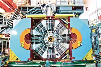 北京正负电子对撞机上的大型探测器——北京谱仪Ⅲ。它是记录对撞产生的粒子特征的装置。科学家通过对数据的处理和分析,进一步认识粒子的性质,揭示微观世界的奥秘。