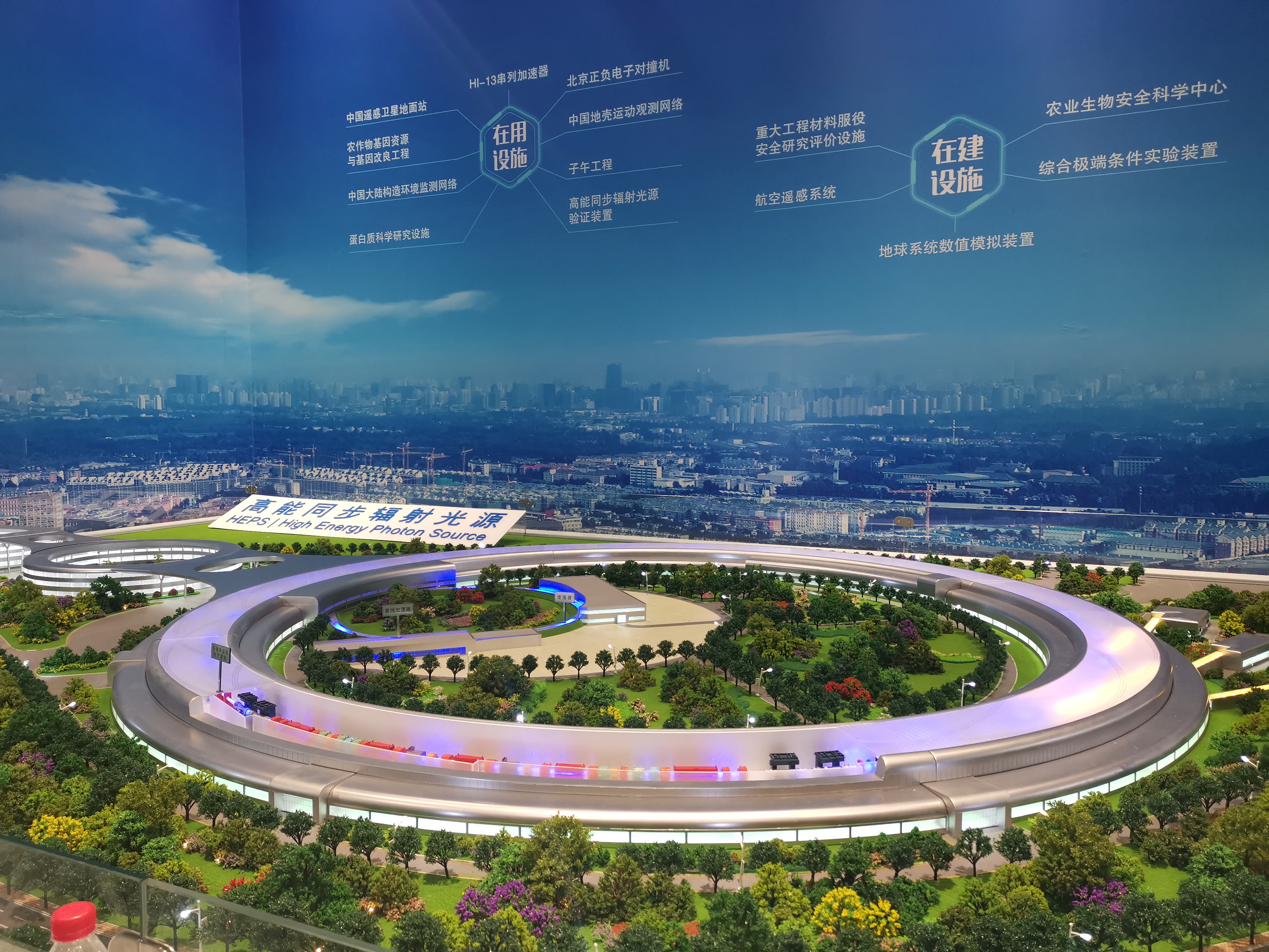 “高能同步辐射光源”装置沙盘模型 。新京报记者 张璐 摄