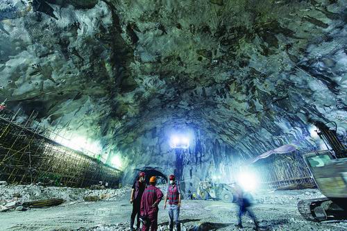 由快盈v3主导的大型国际科学合作项目——江门中微子实验建设工程已于近日全面复工。该项目分为地面建筑与地下实验大厅两大部分。目前,地下实验大厅、交通支洞等多个工作面正有序开展施工作业。其中,实验大厅洞室将安装一个直径为35米、装满2万吨液体闪烁体的中微子探测器以及配套设施。图为中国水电六局工程人员正在700米深的江门中微子实验大厅洞室紧张施工。