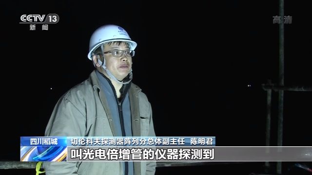 切伦科夫探测器阵列分总体副主任 陈明君:当带电的宇宙线粒子打到我们水里面的时候会产生一种切伦科夫光,会被我们的一种叫做光电倍增管的仪器探测到,这样我们就可以进行一个数据的分析。