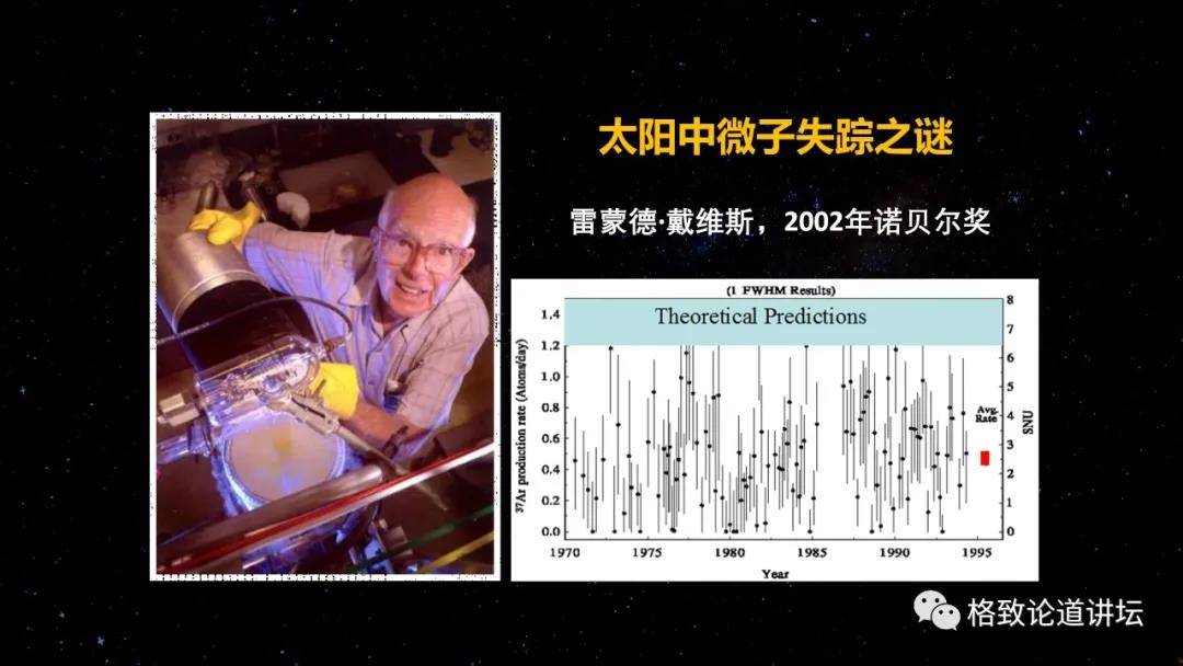 戴维斯在七十年代探测到了太阳中微子,他也因为这个成果获得了2002年的诺贝尔奖,和小柴昌俊一起。