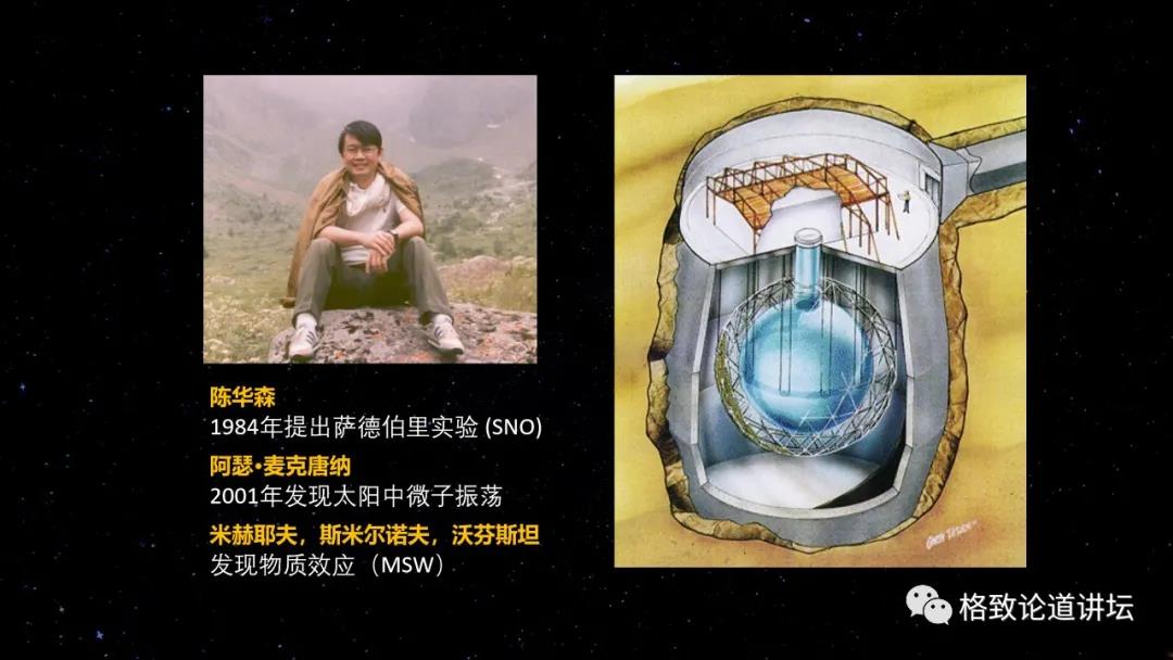 他说如果用重水去探测太阳中微子,同时可以探测三种过程,就可以知道到底是太阳发出的中微子本来就比较少,还是在太阳飞到地球的过程中减少了。