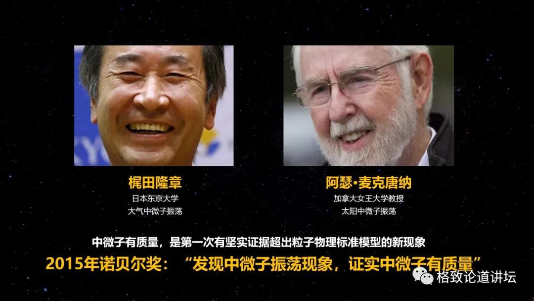 因此,2015年的诺贝尔奖授给了梶田隆章和麦克唐纳,表彰他们发现了中微子振荡现象,证实了中微子有质量。