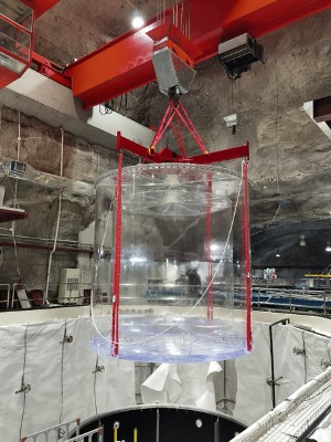 有机玻璃罐从钢罐里吊出(高能所供图)