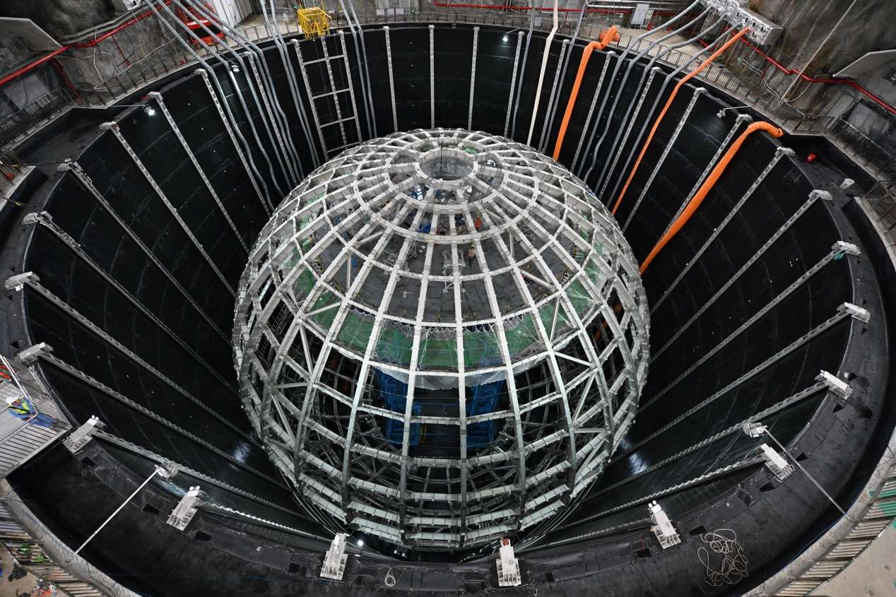 6月24日,江门中微子实验(JUNO)中心探测器不锈钢主结构安装工作顺利完成。江门中微子实验实验大厅位于地下700米。中心探测器是其核心探测设备,位于地下实验大厅内44米深的水池中央,其不锈钢主结构设计采用直径约41米的球形网壳结构形式,也称作不锈钢网壳,作为探测器的主支撑结构,它将承载35.4米直径的有机玻璃球、两万吨液体闪烁体、两万只20英寸光电倍增管、两万五千只3英寸光电倍增管、前端电子学、电缆、防磁线圈、隔光板等诸多关键部件。