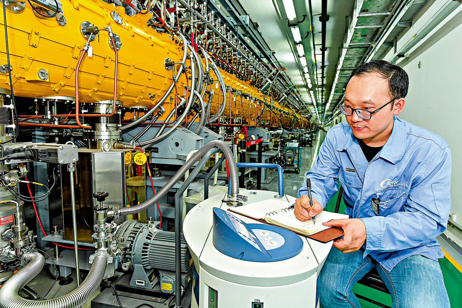 圖:中國散裂中子源工程從項目立項到建成運行,取得了大量科研應用成果。圖為運行管理人員在檢修直線加速器。\新華社