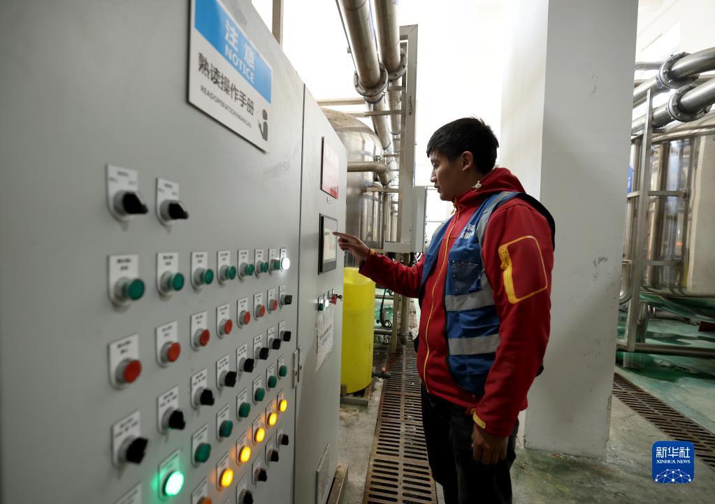 4月22日,在高海拔宇宙线观测站观测基地水处理机房,工作人员在操作水处理相关程序。新华社记者 金立旺 摄