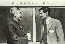 八、以后的5年,西欧中心没有进一步采取行动,直到WEISSKOPF在1971年4月22日写给于1971年1月接替GREGORY任总所长的JENTSCHKE(Willibald Jentschke)(右上图左)的信中再次提出这一问题。WEISSKOPF在该信中写到:"我十分确信,你们所有的人这些天都曾考虑过与中国高能物理学家们建立关系的问题。很显然,我十分支持采取这一步骤,并想敦促你们邀请一些人参加阿姆斯特丹会议和西欧中心加速器会议。"在信的结尾他写到:"希望这些行动取得成功。一旦这些做法看来具有成功的希望,搭建桥梁毕竟是我们的义务。我们打算邀请一些中国的物理学家参加在美国召开的会议。"