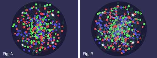 以上图像将预言中的气体夸克-胶子等离子体态(Figure A,见mpeg animation)的夸克中的相互作用和集体运动,或“流动” 的程度与RHIC上金-金对撞观测到的液态(Figure B,见mpeg animation)加以对比。绿色的"力线"和集体运动(仅在动画中可以看到)显示在被描绘成近乎“完美的”液体中夸克间更高程度的相互作用和流动。