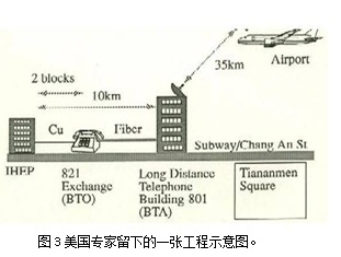 两国科学家对如何联网进行了种种设计,图1就是当年留下的一张草拟的联网设计图。第一步计划是通过AT&T公司的64K带宽的卫星专线实现北京高能所(IHEP)与美国斯坦福大学附近的直线加速器中心(SLAC)相连,由美国能源部网络(ESnet)连入互联网(Internet);第二步再实施通过海底光缆实现128K速率与日本高能所(KEK)相连直接进入互联网(1994年底实现)。高能所很快向美国思科公司订购了Cisco3000系列的路由器(见图2所示),这是中国向思科公司订购的第一台路由器。专线经过18个月的反复调试,于1993年3月2日全程线路畅通可以投入使用,先运行DECnet的通讯协议,年底思科路由器到货,正式运行互联网的TCP/IP协议。这样不仅为数据传输、电子邮件的开通,而且为实现WWW网站等互联网技术铺平了道路。高能所立即设立了中国第一台WWW网站(http://www.ihep.ac.cn/),1994年期间亚洲地区的网站还寥寥无几,网页是用英文设计的(见附件3)。图3是美国人当年留下的一张工程示意图,由美国SLAC计算中心主任Les Cottrol提供。从图中可以看出,当时的专线除了租用国际通信卫星,同时地面分别用光缆和铜线连到高能所的计算中心。