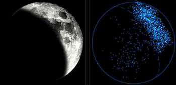 (右图为钱德拉”2003年9月拍摄到的一组月球X射线照片,图右侧为所拍摄的月球明亮区域由氧、镁、铝和硅原子发出的X射线照片)