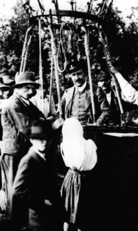 奥地利物理学家赫斯(Victor Franz Hess,1883-1964)(右图)是一位气球飞行的业余爱好者。他设计了一套装置,将密闭的电离室吊在气球下,电离室的壁厚足以抗一个大气压的压差。他乘坐气球,将高压电离室带到高空,静电计的指示经过温度补偿直接进行记录。他一共制作了十只侦察气球,每只都装载有2~3台能同时工作的电离室。