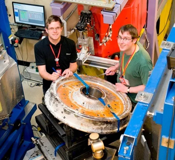 在英国散裂中子源,科学家把整个飞机机翼吊装到仪器的测量部位,直接观察在什么加工工艺下,机翼的各个部分结构才能得到最优化的性能。
