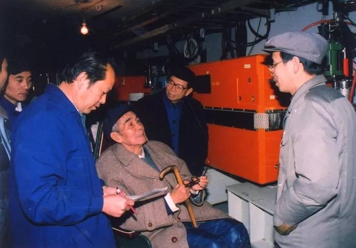 ▲ 对撞机建设期间,张文裕先生多次坐着轮椅到加速器隧道了解工程进展