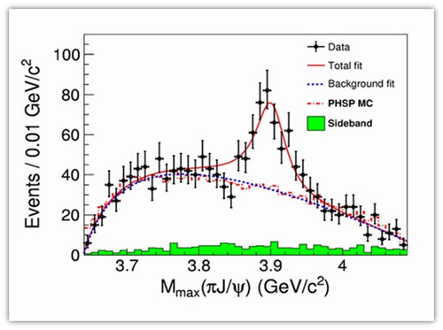 2013年3月8日凌晨,BEPCII对撞亮度在1.89GeV设计能量下突破7×1032cm-2s-1,最高达到7.08×1032cm-2s-1,对撞亮度再创新高! 2013年3月26日,北京正负电子对撞机上发现新的共振结构,暂时命名为Zc(3900),可能是科学家们长期寻找的一种奇特强子,很可能为寻找和研究新型强子态开启了一扇大门! 2013年7月17日,中共中央总书记、国家主席、中央军委主席习近平来到中国科学院考察工作,首先考察了高能物理研究所! 北京谱仪III实验发现的新的共振结构Zc(3900)